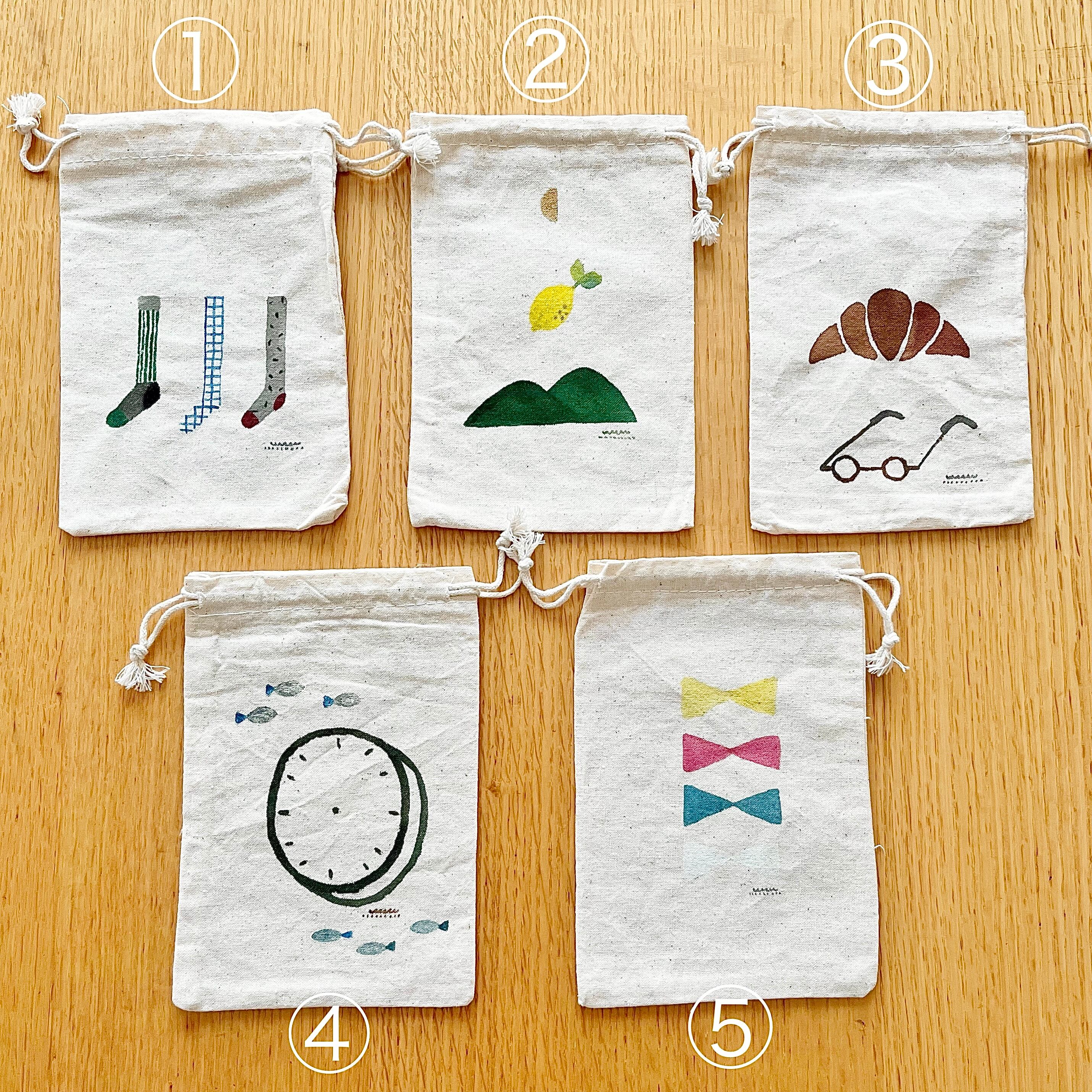 コットン製の巾着袋に布用絵の具で絵を描きました。